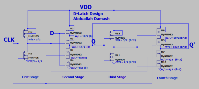 This project will build upon the designing of standard CMOS inverter to design more complex digital CMOS combinational and sequential building blocks: