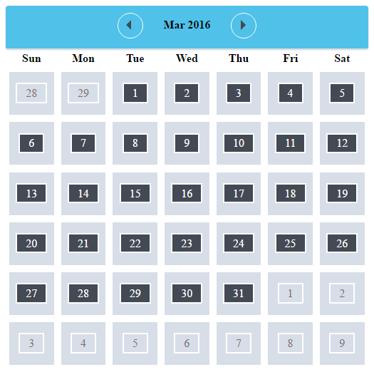 Simple Angular2 date picker using Bootflat Theme. Uses version "2.0.0-beta" of Angular2. Here is Demo using two different Themes