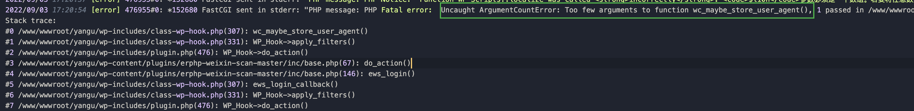 do_action('wp_login', $user_login);缺少第三个可选参数$user,WooCommerce 登录需要这玩意。