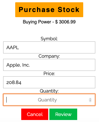 - User input used to check validity of stock and purchase ability