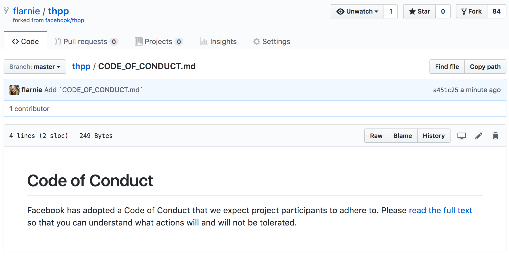 In the past Facebook didn't promote including a Code of Conduct when creating new projects, and many projects skipped this important document. Let's fix it. :)