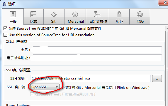 要想ssh私钥和Linux下的通用,要将SourceTree一般选项下的SSH Client类型改为OpenSSH。