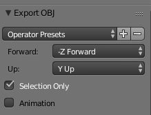 A surface mesh will be intersected by the open world framework to determine the ground. Walls are also detected to stop players walking through walls. Also notice the units of distance in the blender model are around about 1 meter. Also Z is up. Also some meshes are hidden in order to reduce the size. To export the temple.blend model to obj, select all the meshes you wish to export (will exclude the hidden ones) and then export the obj and then click on 'selection only' to only export the selected meshes.