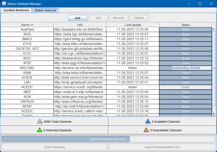 - If GlobalQuake starts lagging heavily or even crashes after a few minutes, it is probably due to insufficient RAM in your system, and you need to select fewer stations.