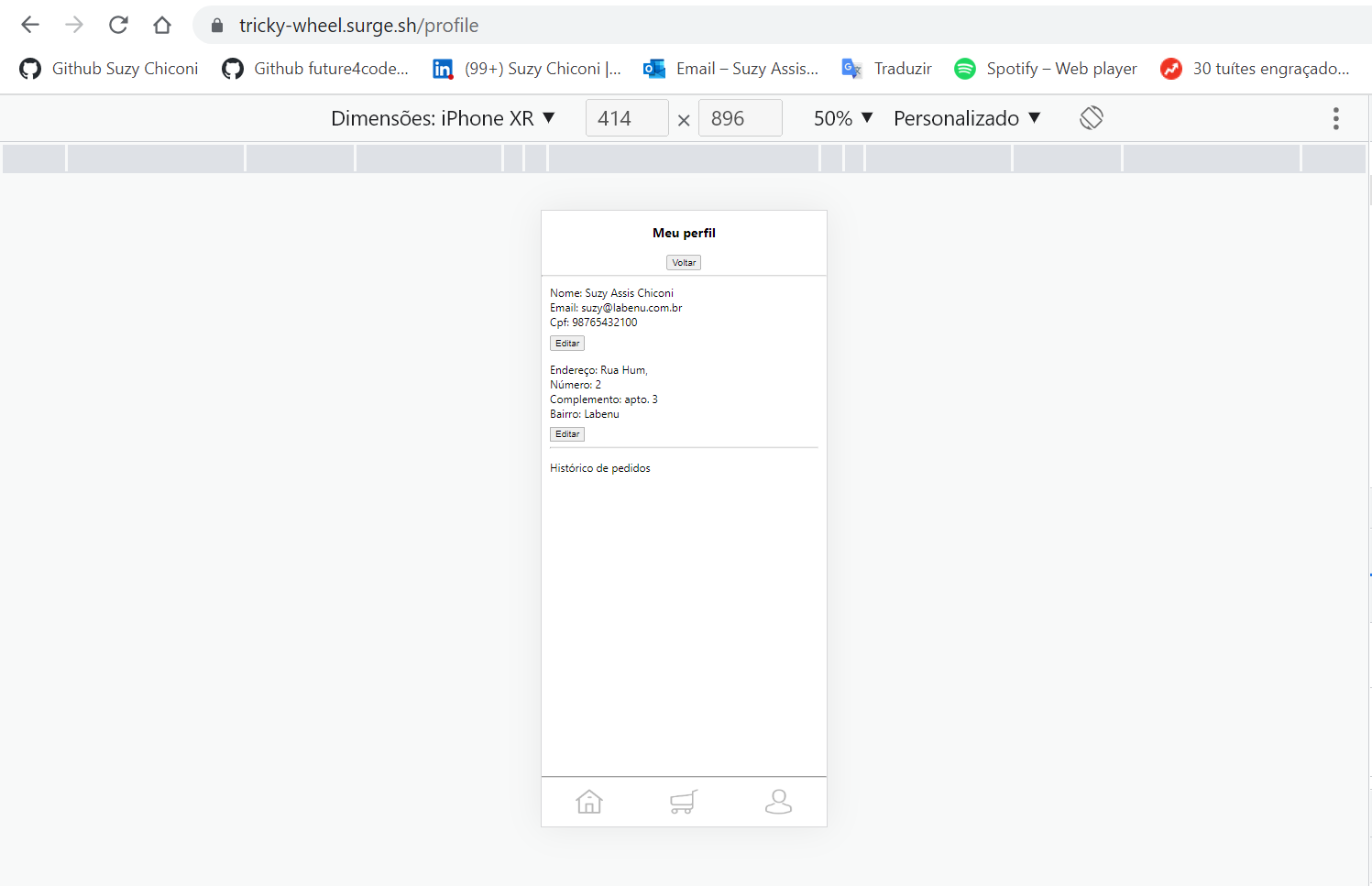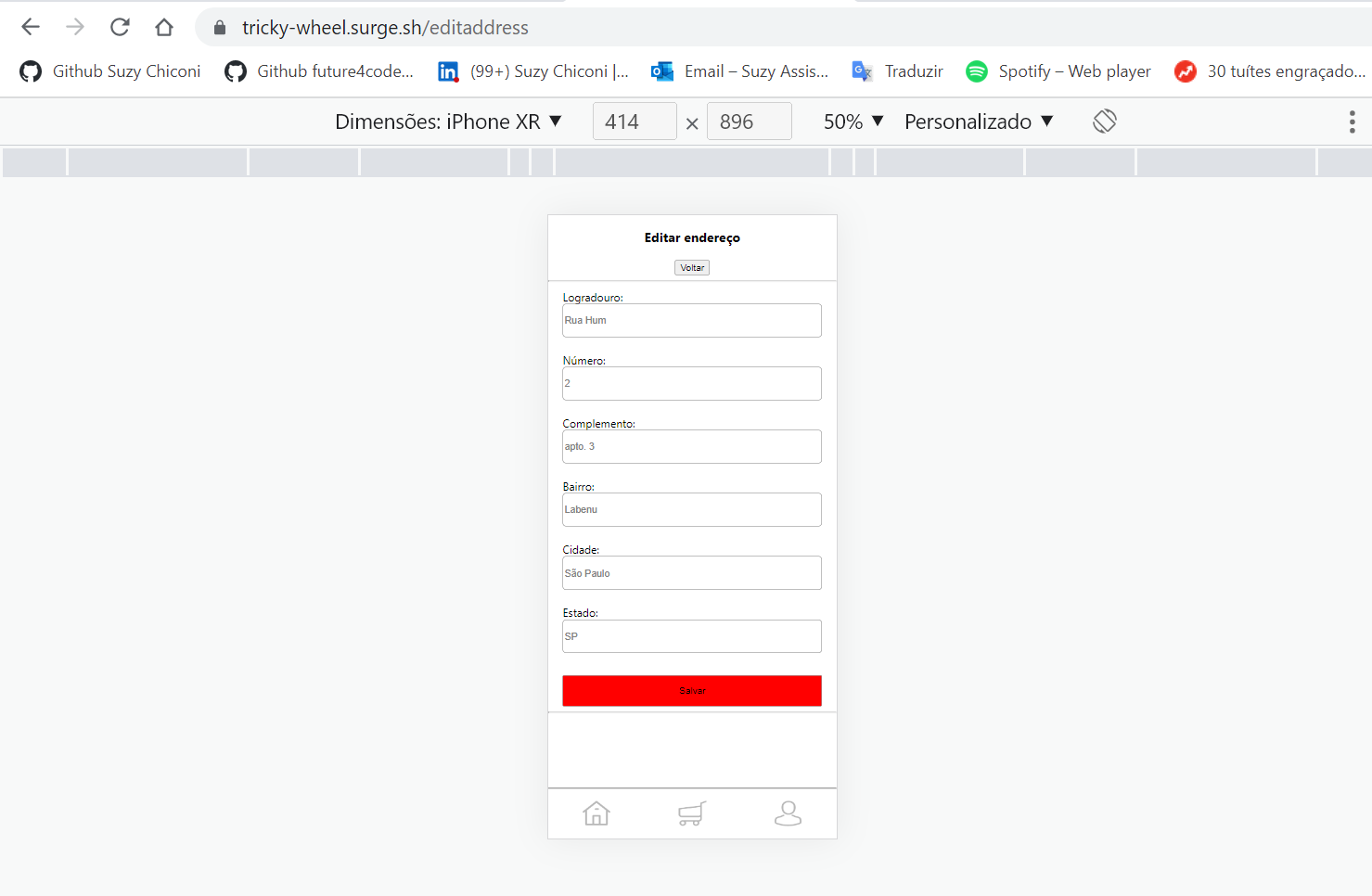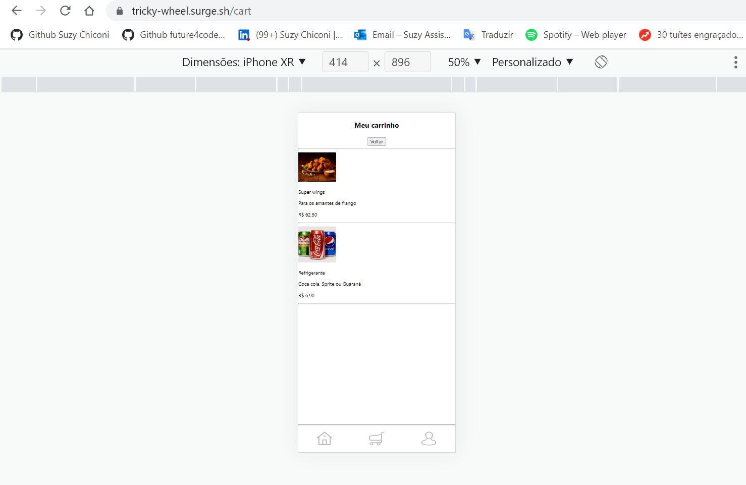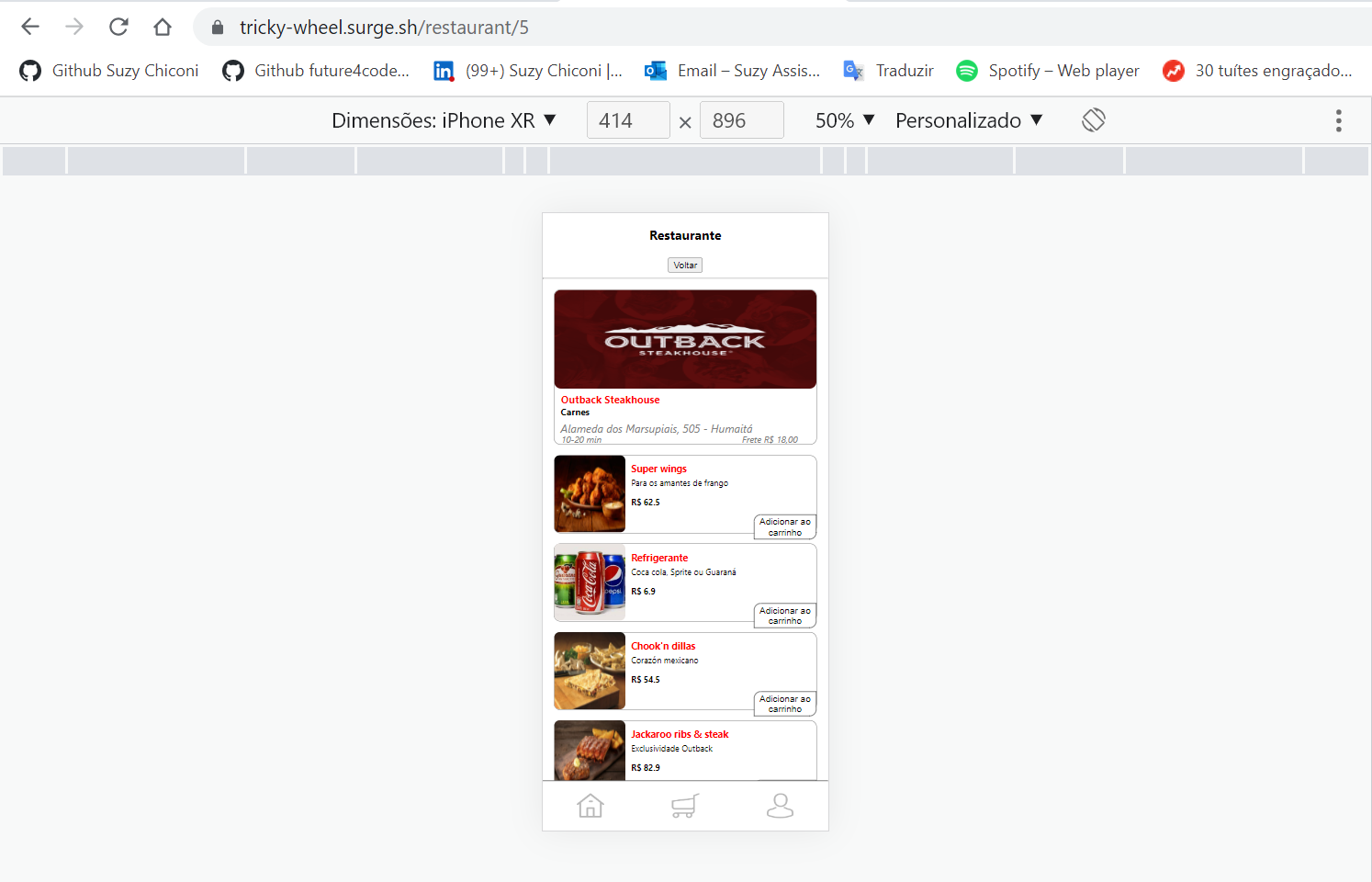 - Funcionalidades do carrinho (exibição do endereço de entrega, valor da compra, forma de pagamento e remoção de itens)