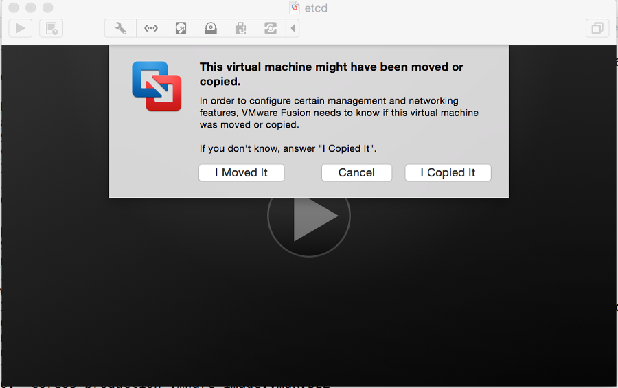 This will lanch the etcd VM. A window will present itself with a dialog box