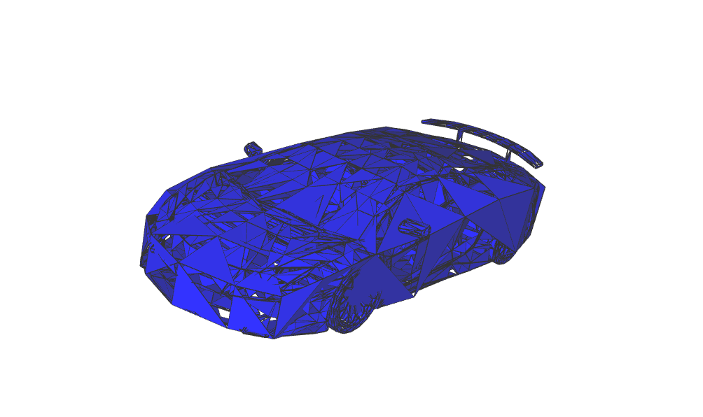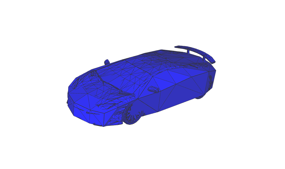 Some artefacts remain on the car dur to the fact that the obj file defines several parts and your object is a single array