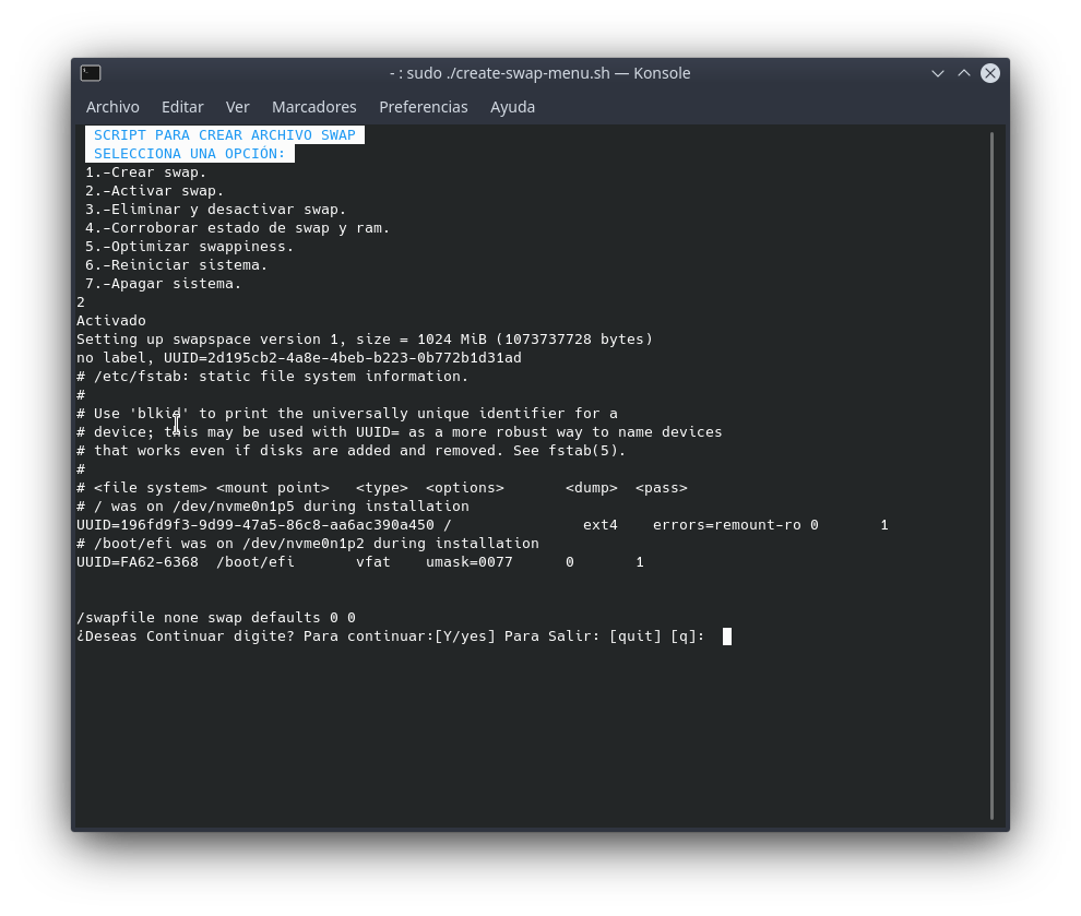 SCRIPT PARA CREAR ARCHIVO SWAP