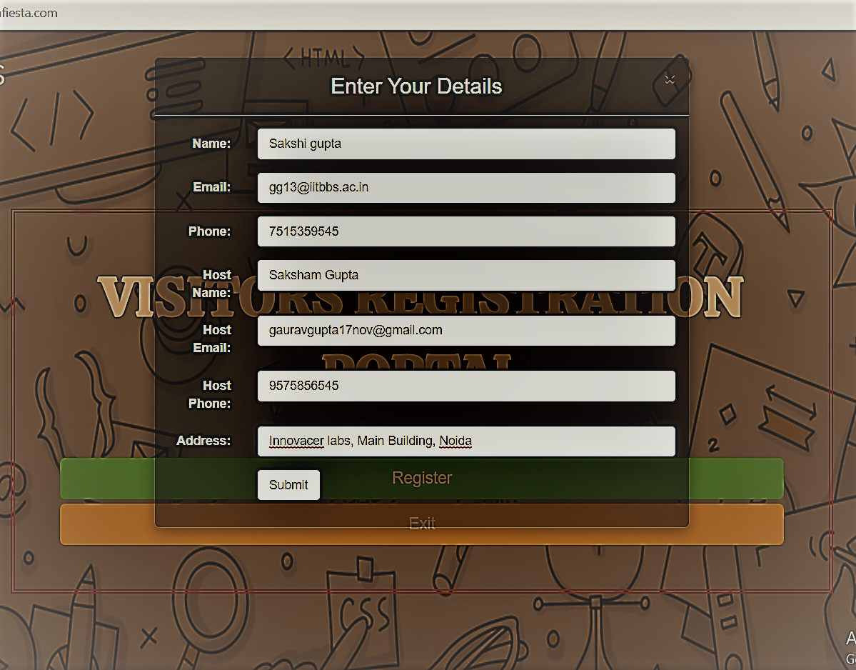 This Visitor Management portal is live http://visitor.almafiesta.com . Please have a visit.