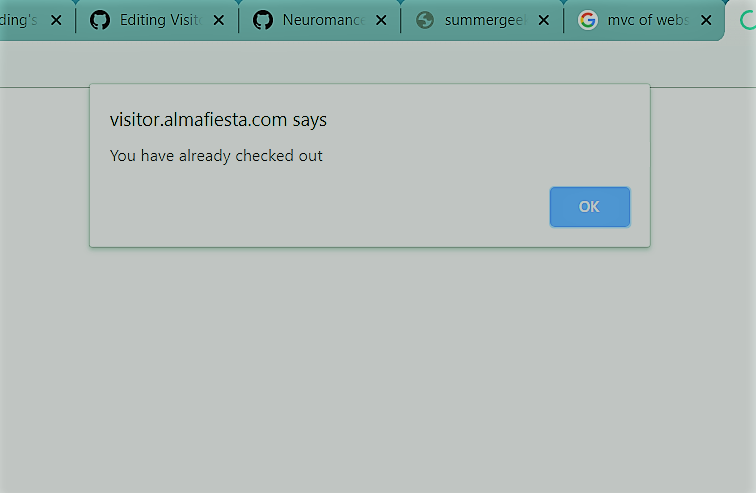 If the visitor tries to checkOut again, he will see this message in his dialog box.