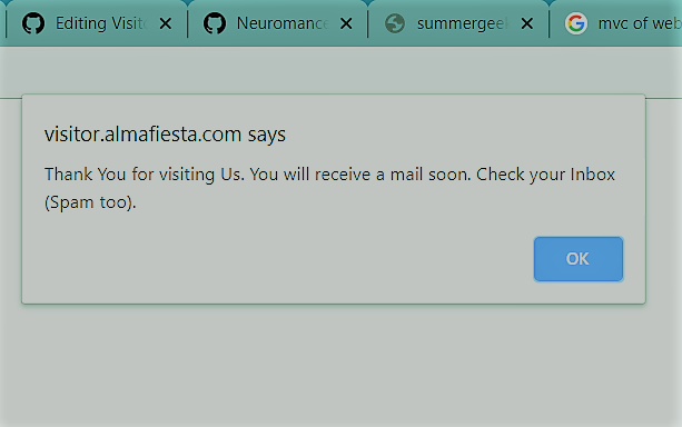 If the Visitor enters correct details, he will she this dialog box on his screen.