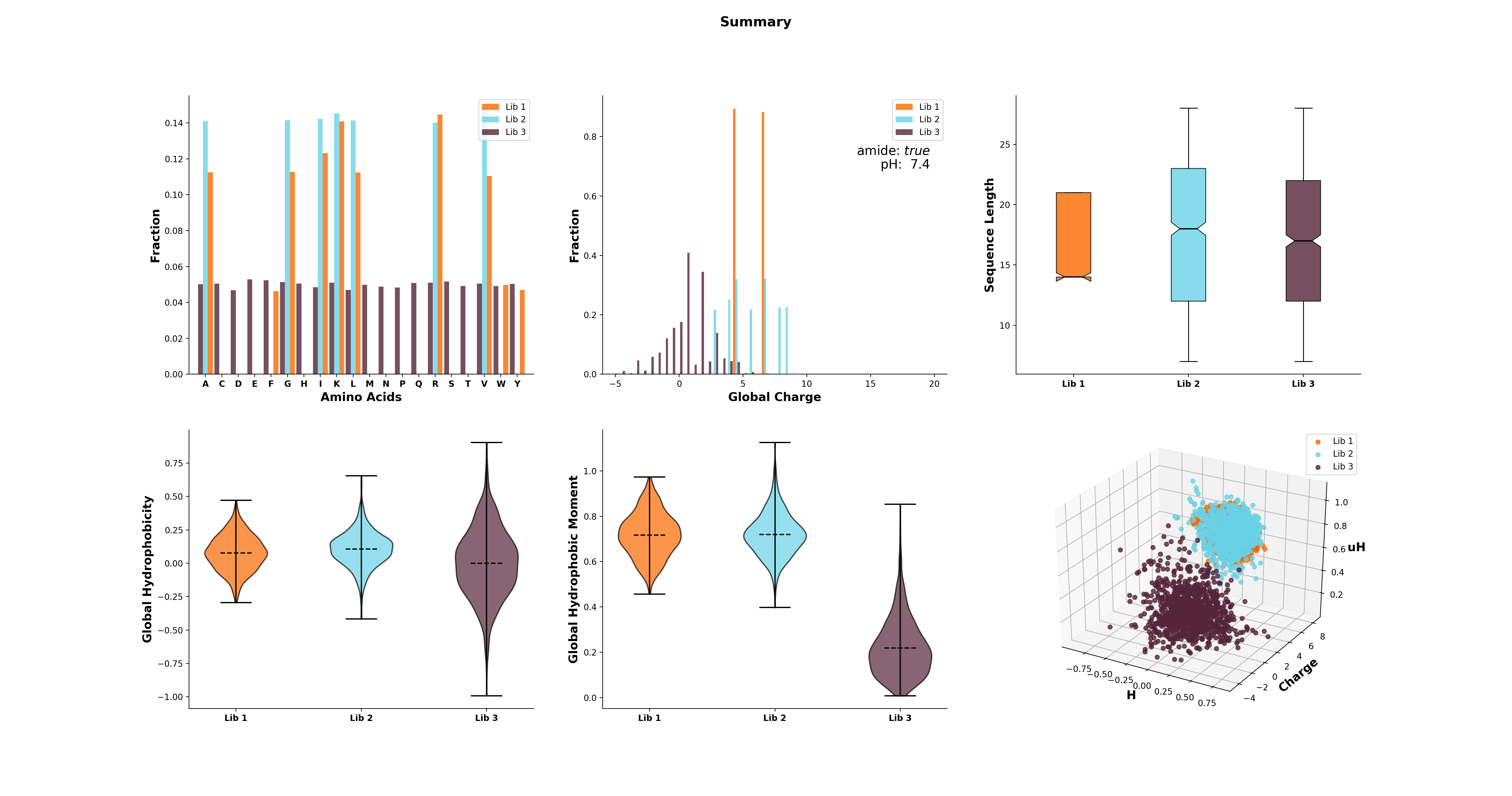 >>> analysis.plot_summary()A detailed documentation of all modules is available from the modlAMP documentation website.