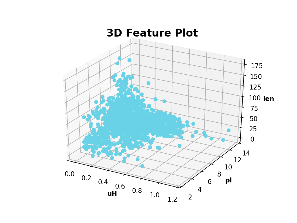 >>> plot_2_features(A.descriptor, B.descriptor, x_label='uH', y_label='pI', targets=target)| Example: | 3D Scatter Plot |
