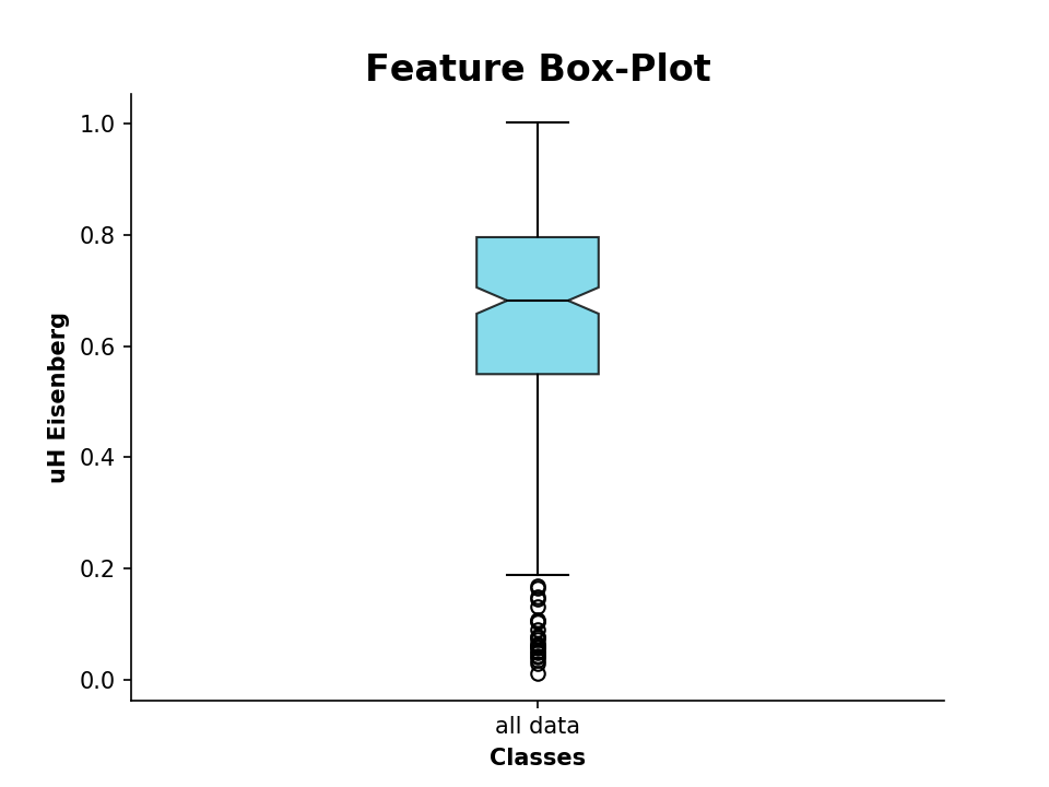 >>> plot_feature(D.descriptor,y_label='uH Eisenberg')We can additionally compare these descriptor values to known AMP sequences. For that, we import sequences from the