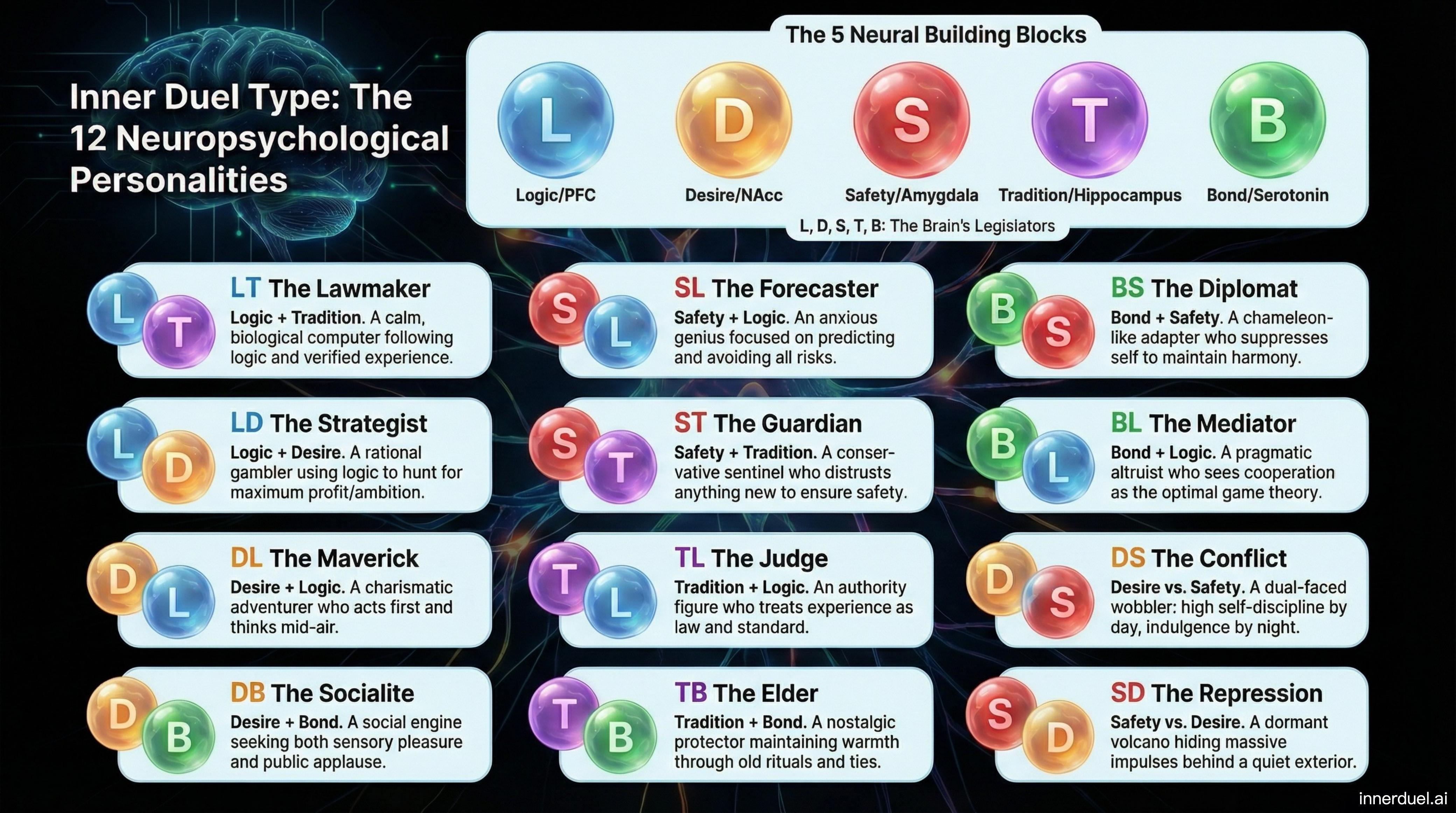 I got tired of the mental chaos, so I created IDT (Inner Duel Type) β a neuro-based personality system with 12 unique types. My mission is to help people move from "survival mode" to "flow state" by mastering their internal council.