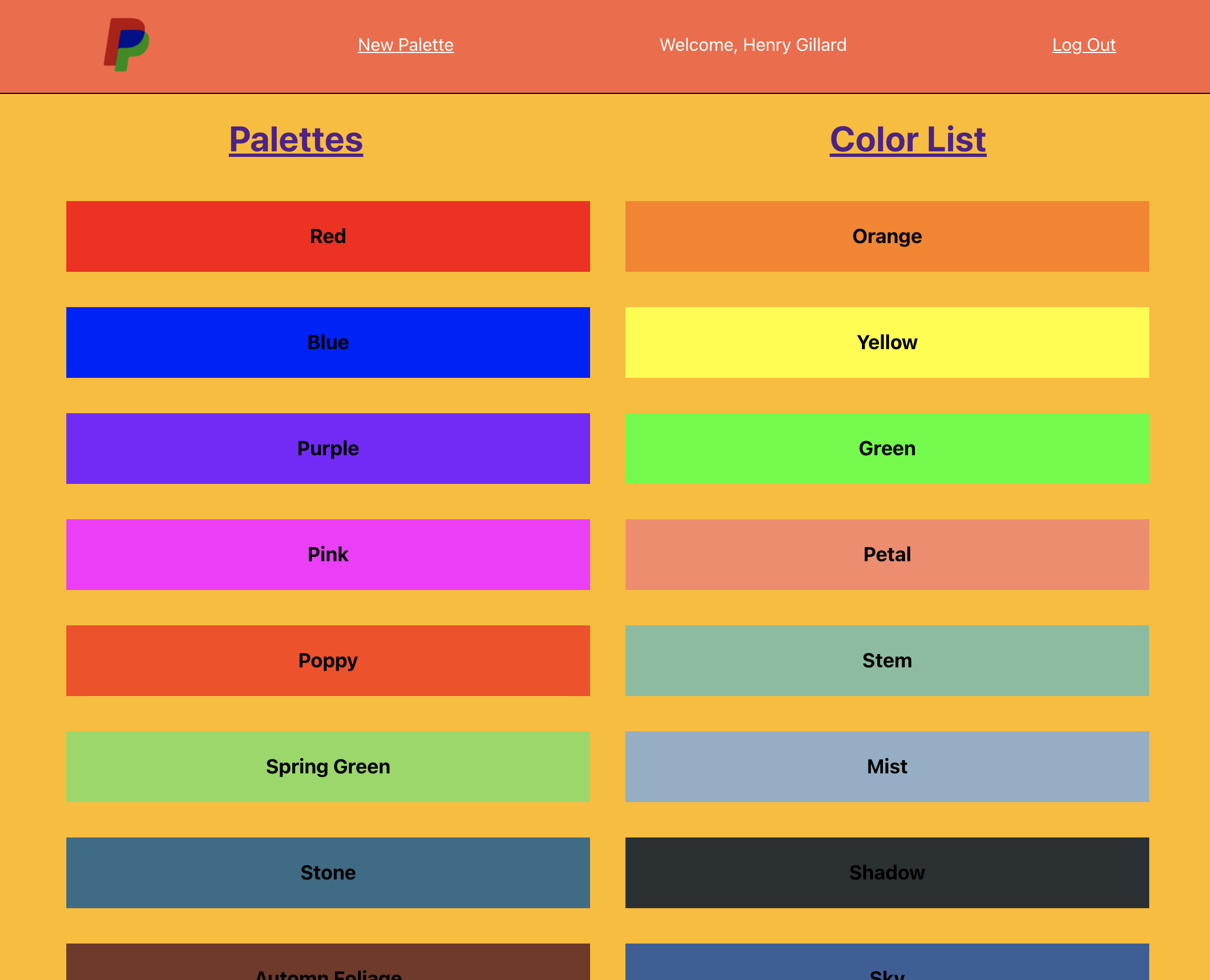 - Allow the user to store saved palettes.
