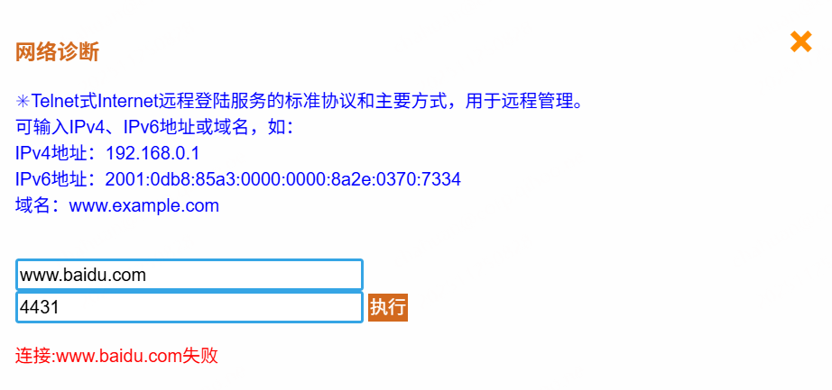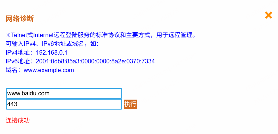 3.网络诊断功能新增服务器出口地址和内网地址的判断,会返回相应的提示,不会进行连接判断;