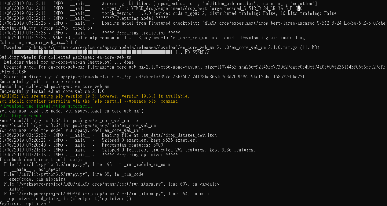 When I just do_predict, I got KeyError of optimizer, like this:  Do you have any idea for the problem ?