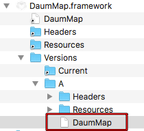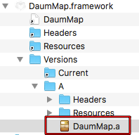 - DaumMap.framework 내의 DaumMap 파일을 찾아 확장자 .a 를 추가 한다 -> DaumMap.a