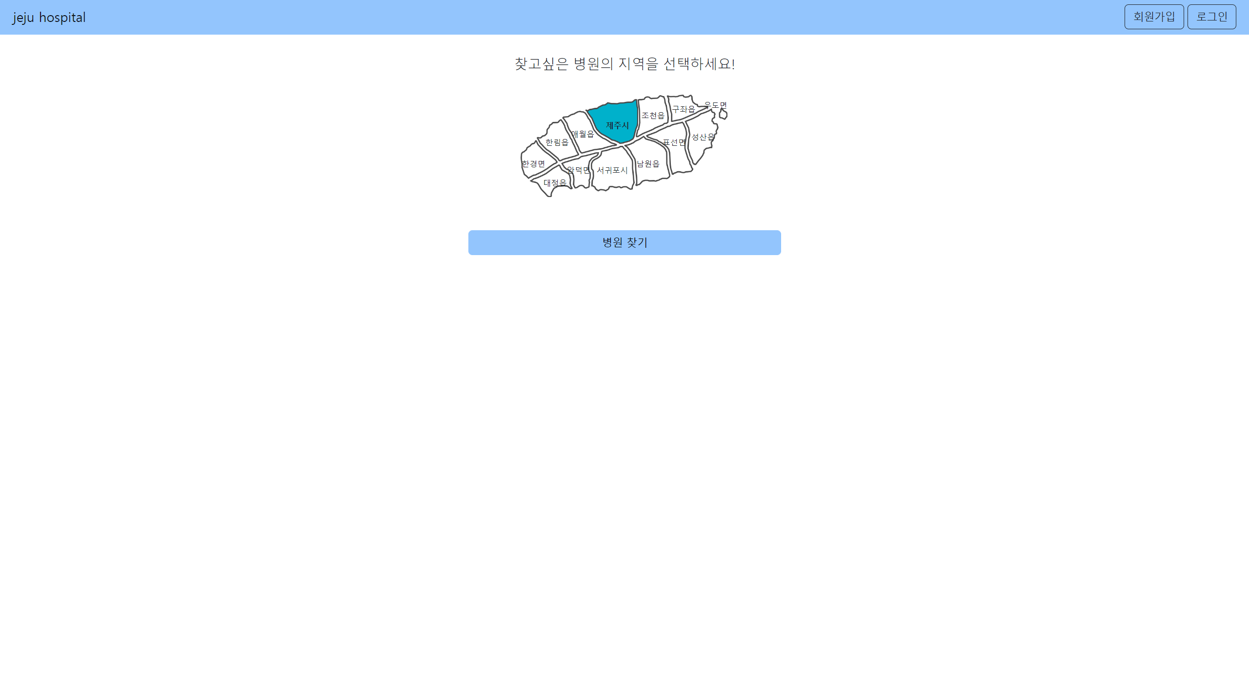 - 제주 지역과 진료과목에 따라 구분된 병원 목록 제공 (서비스 제공 지역만 버튼 활성화)