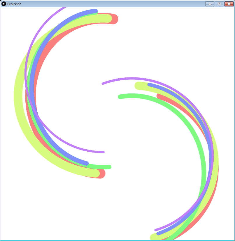 - Recreate this sketch using the colouring shown. You will need to use a different colour space to complete this task (HSB instead of RGB).
