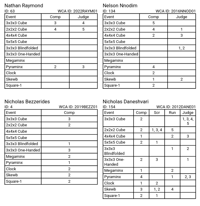 One of our staff was assigned to scramble and judge many groups, which caused the text for 3x3x3 Blindfolded and 3x3x3 One Handed to wrap. This caused the whole page to be slightly longer than 8.5x11 and it messed with the printer.