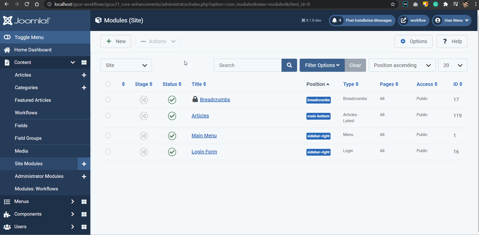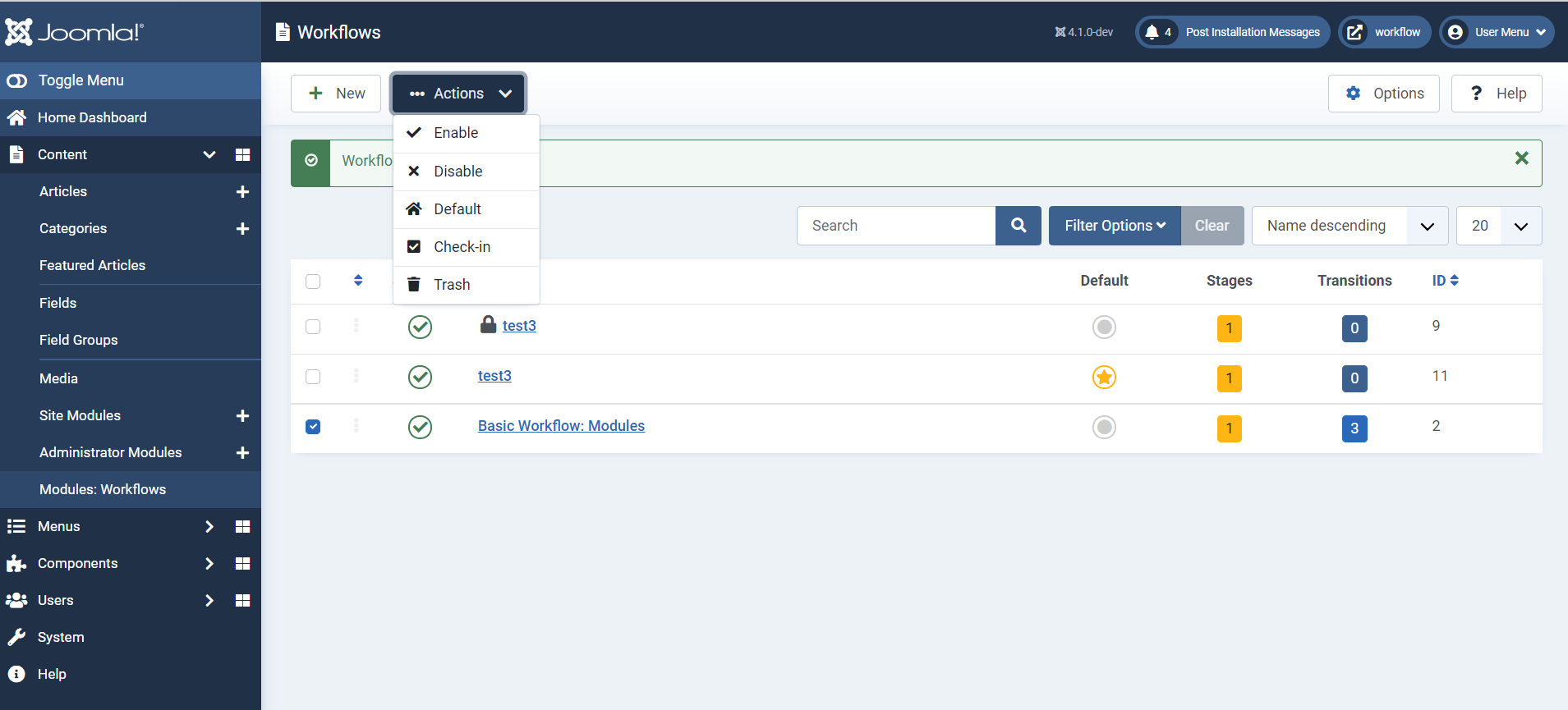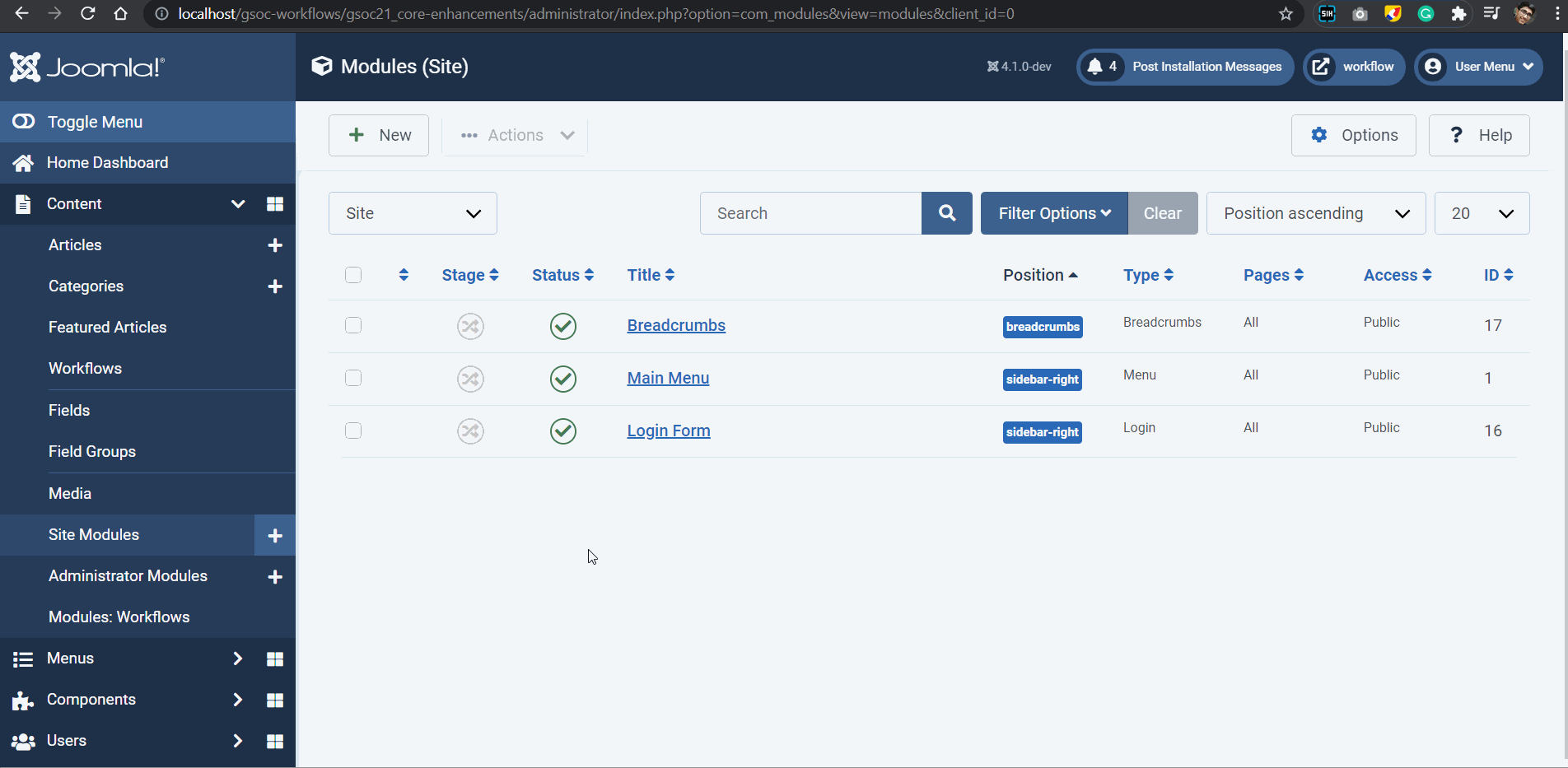 This is a substitute for Task 3. The aim of this PR is to incorporate Workflows in com_modules