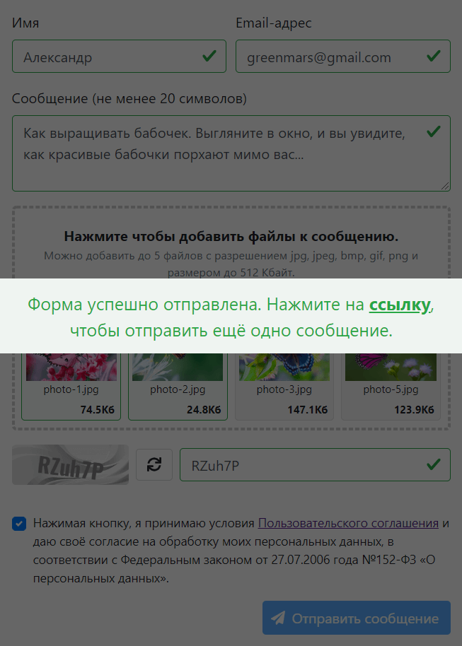 Check the on here Demo: https://itchief.ru/examples/lab.php?topic=php&file=feedback-form