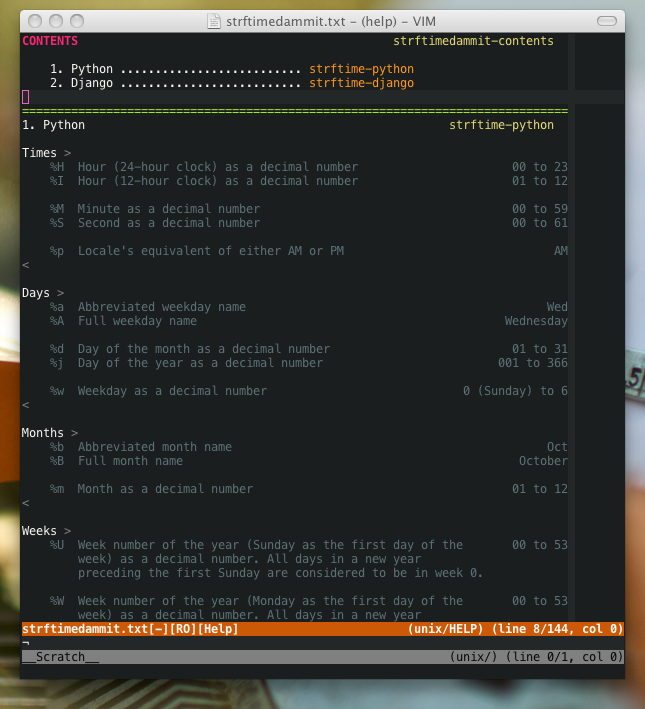 Lists strftime-like formatting characters for:
