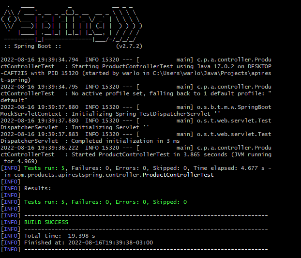 Os Testes unitários no Controller foram realizados mediante, JUnit, Mockito e Spring MockMVC.