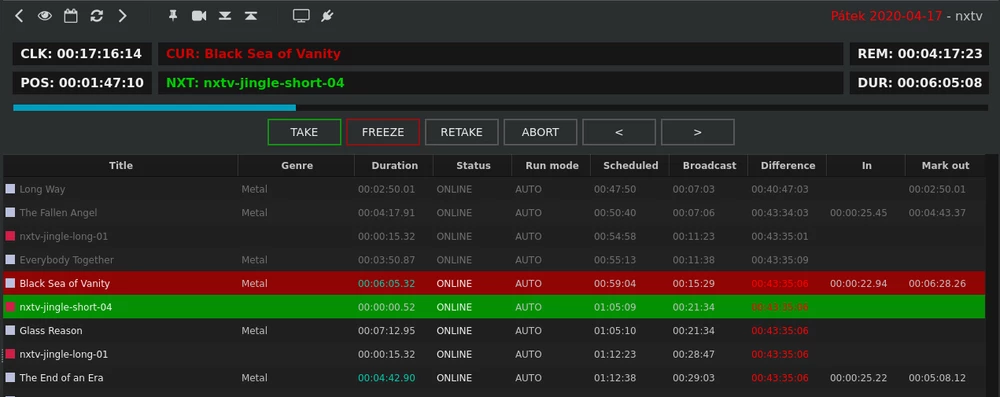 For linear broadcasting, Nebula can control CasparCG, VLC or Conti. Broadcasting can run autonomously with and option of starting blocks at a specified time.