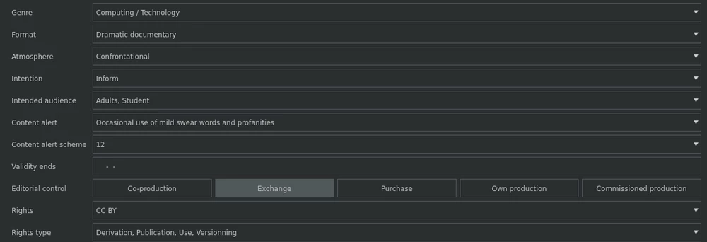 Simple and fast media catalog based on EBU Core includes a description of asset genre, editorial format, atmosphere, rights, relations, and technical metadata, while its very fast search engine makes navigation among media files very easy.