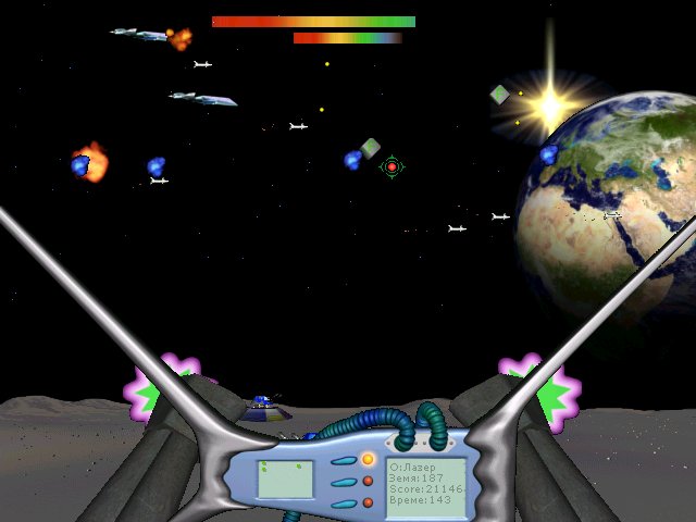 DD2 is a single-player 2D shoot'em up game where you control a battle turret on the surface of the moon. Your mission is to repel organized alien attacks against the Earth. The game consists of 5 separate missions, each with a set of objectives you'll need to accomplish. Players may create separate game profiles. There are statistics being collected for each profile after a mission has been completed. Stats are used for a Hall of Fame ranking.