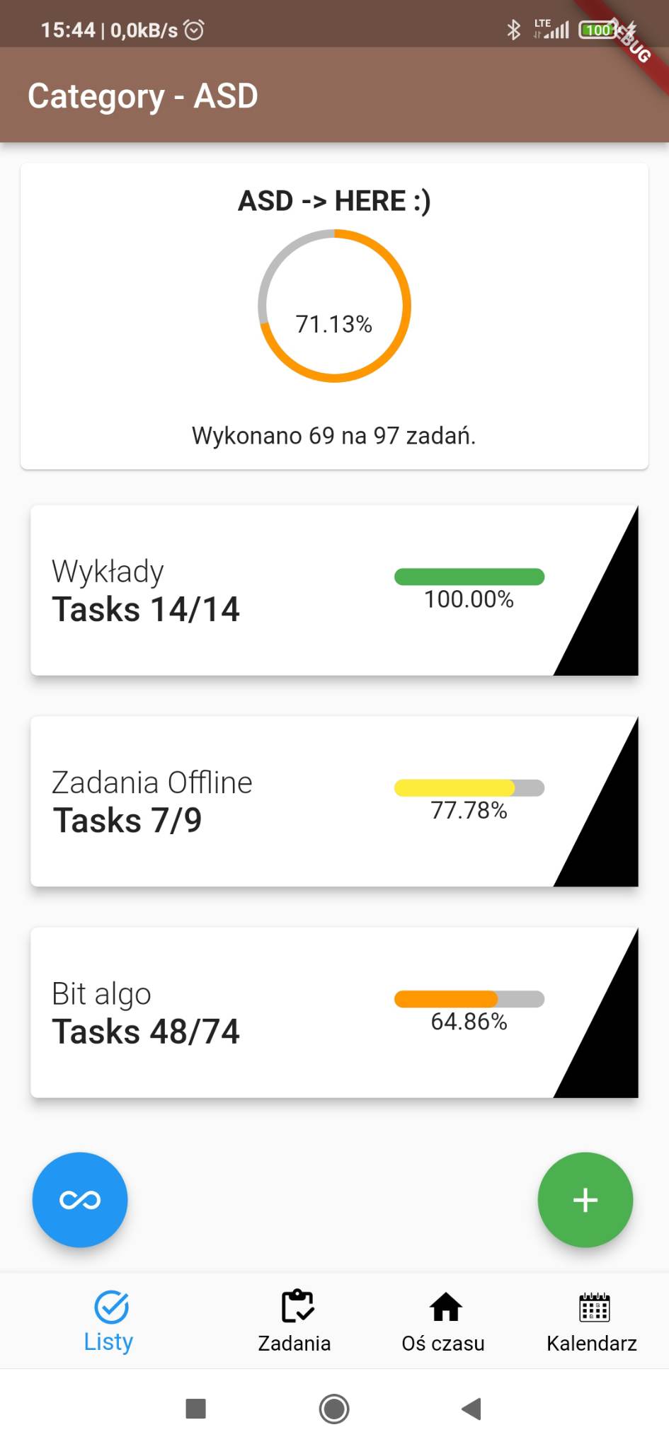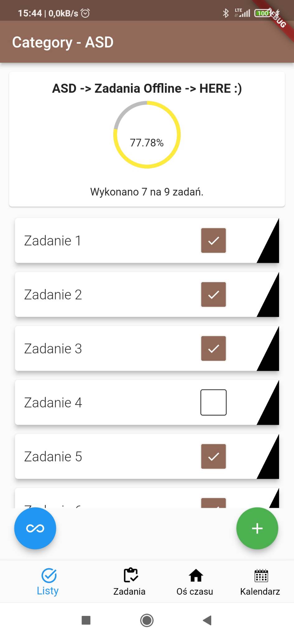 Last type of exercise is todo (checkbox). This type is good to use when you have a lot of very similar task. I used this type to mark which tasks/topics/chapters I did, for example, in a given book. There is no limit about deep of level of tasks.