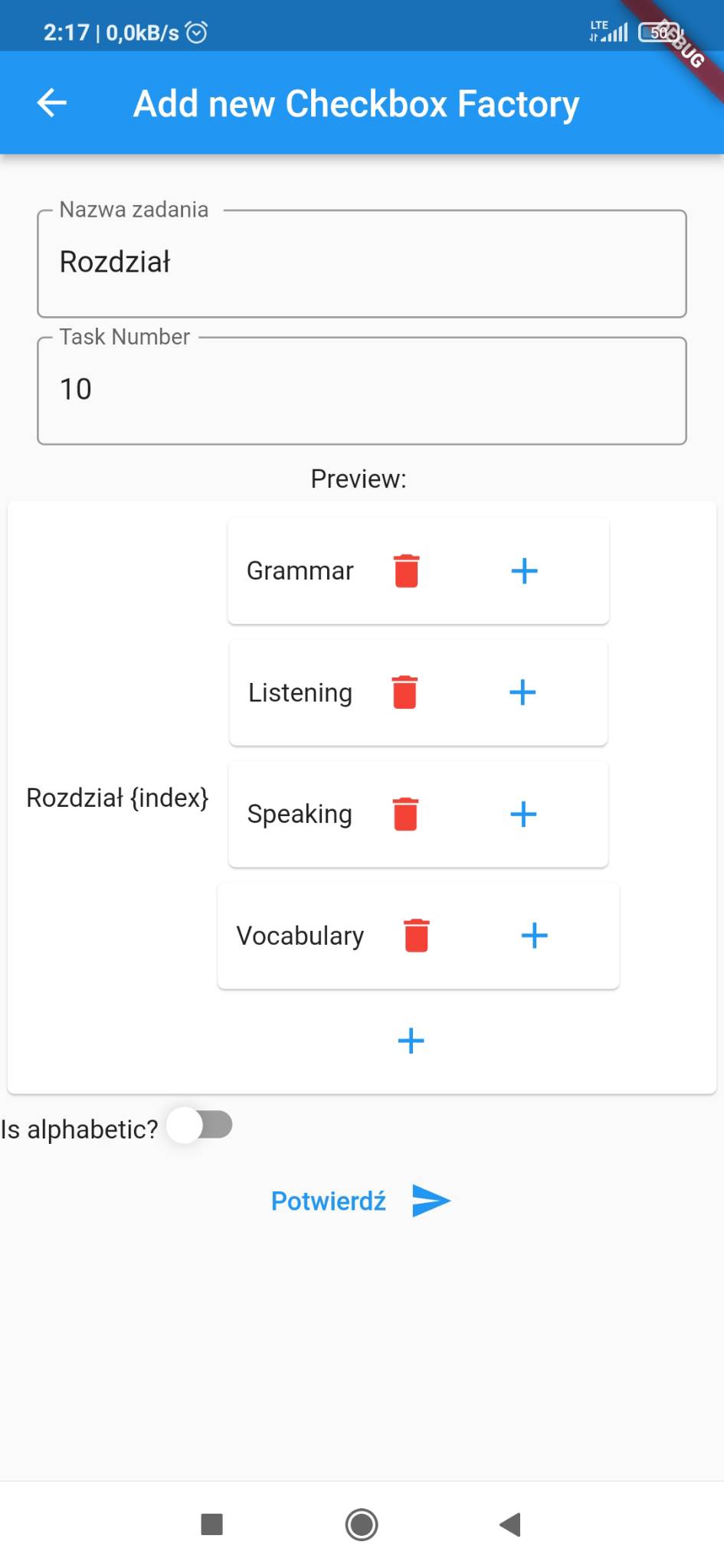 But when you want to add something like your english book exercise and units are very similar (identical in subunits) you can use a TODO Factory. This feature was created for such cases. You can create Units with structure: