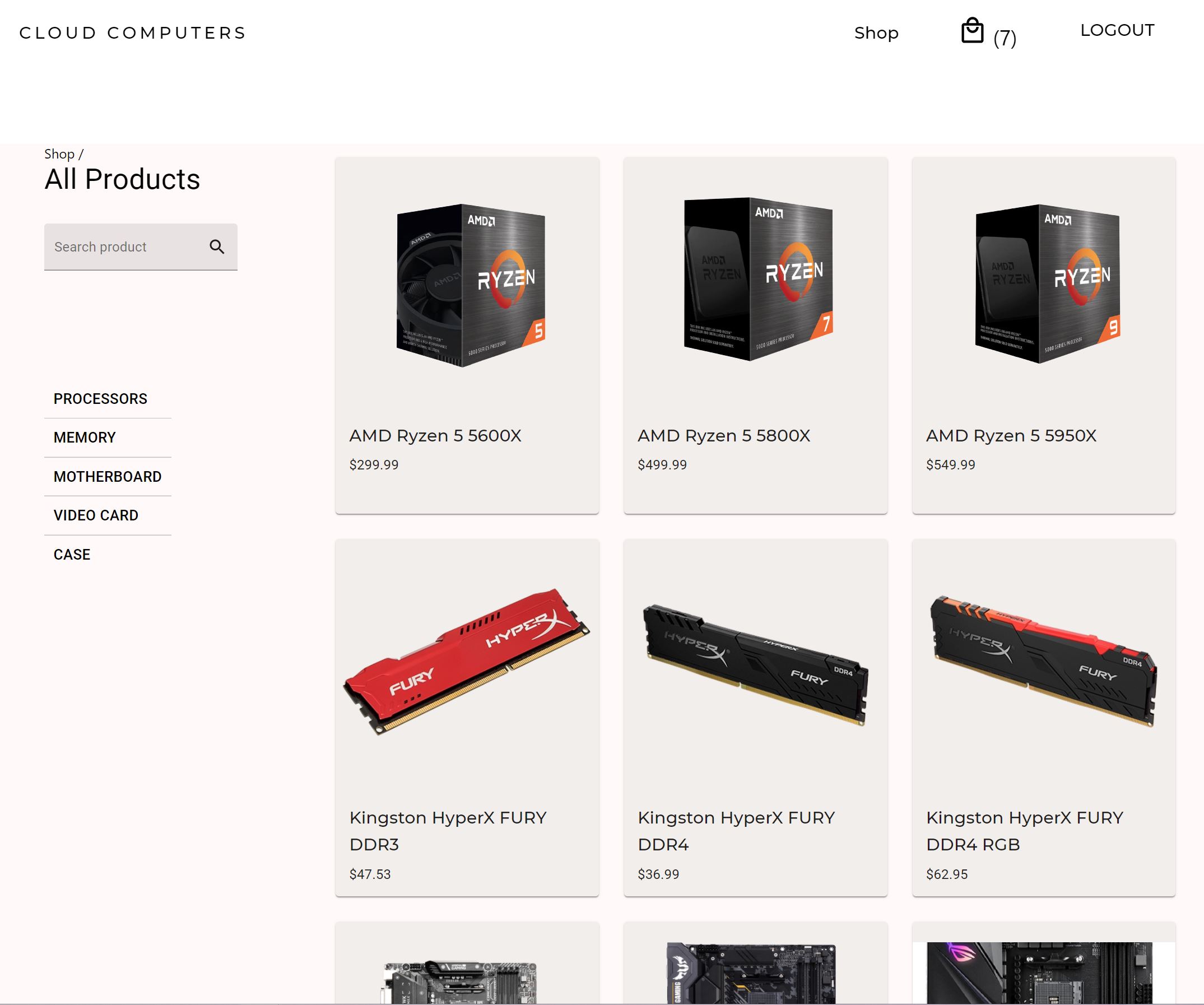 - The catalog page displays a preview of all the items in the shop. In this page, a user can search for a specific product by name or filter all products out by their specific category.