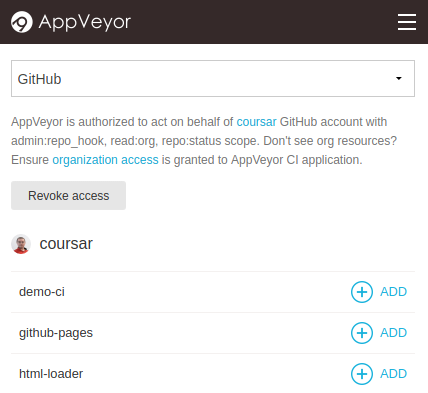 GitHub-репозитория будет приводить к запуску сборки на AppVeyor.