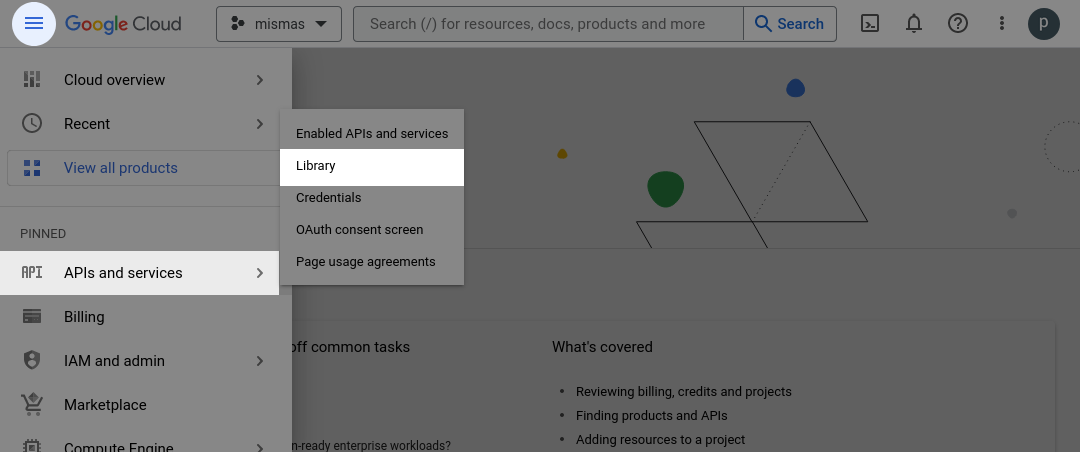 A pop-up window will appear with the option to create a new project in the top right-hand corner of the window. Once the project has been created, the APIs need to be activated. This can be done by selecting "APIs and Services > Library" from the Navigation Menu located at the top left-hand side of the page.