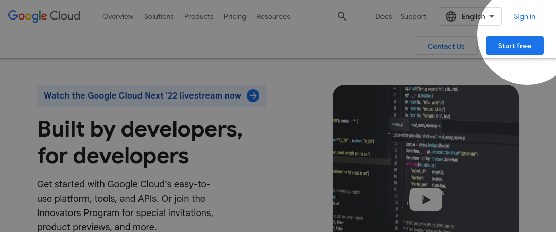 A Google Cloud Platform account is required to use both APIs, options to login or register are displayed in the top right corner of the platform's landing page.