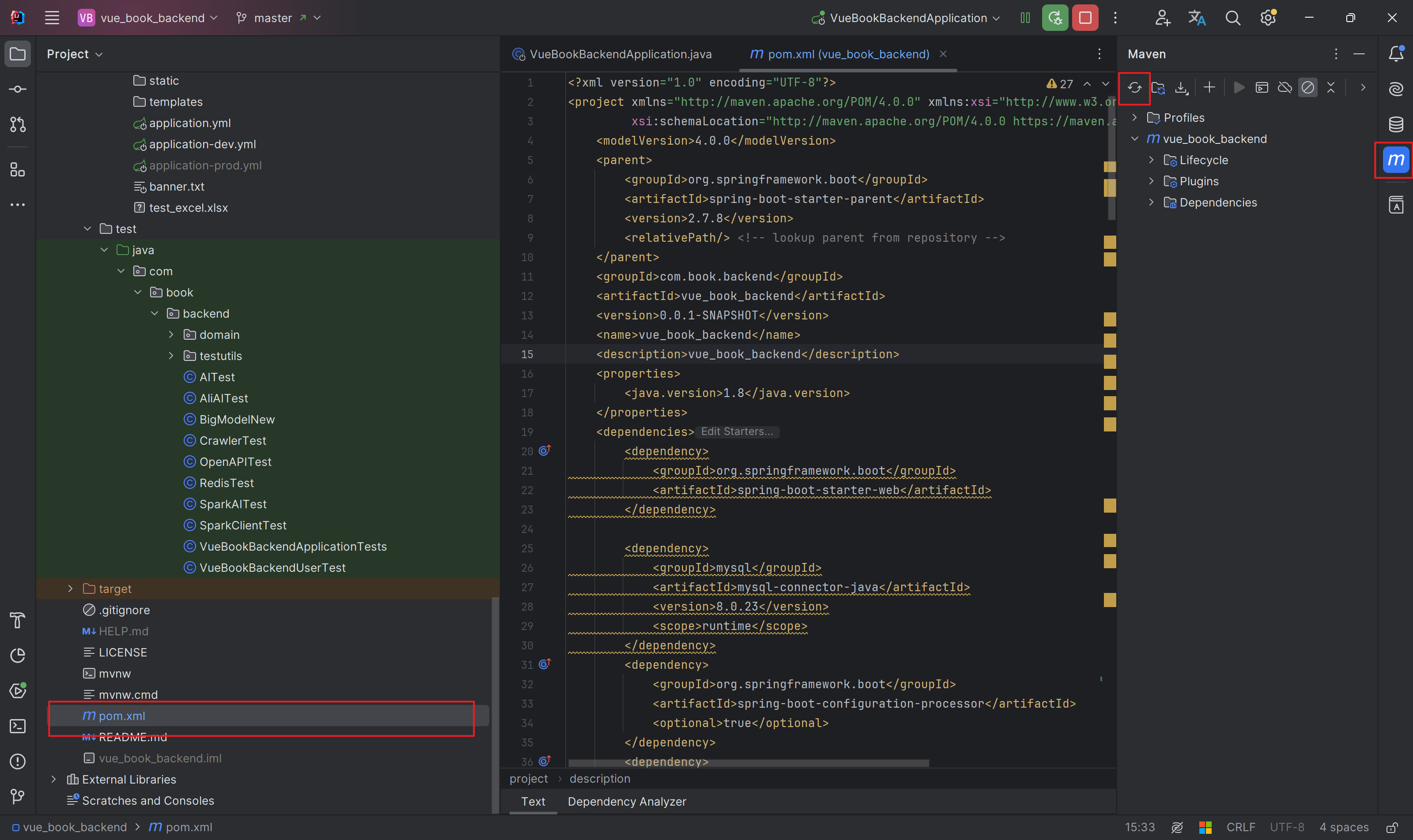 后端项目注意maven依赖下载(IDEA(推荐)或者Ecplise)