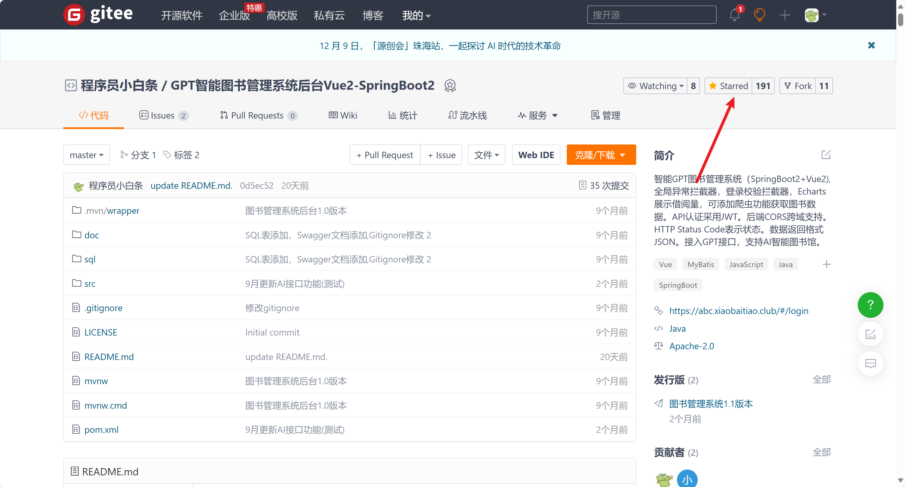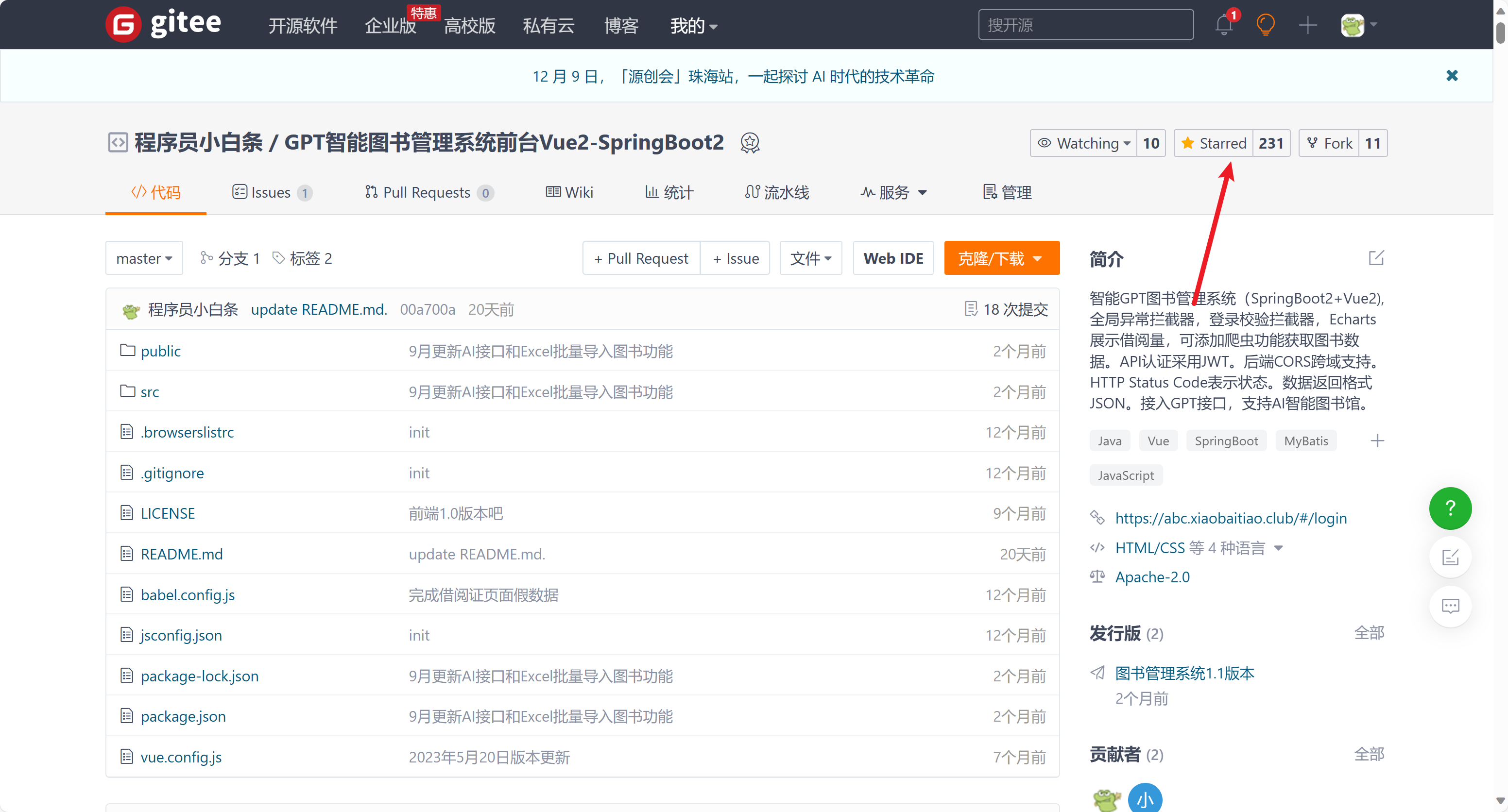 2.增加了GitHub和Gitee的地址图标,方便进行项目拉取和克隆。