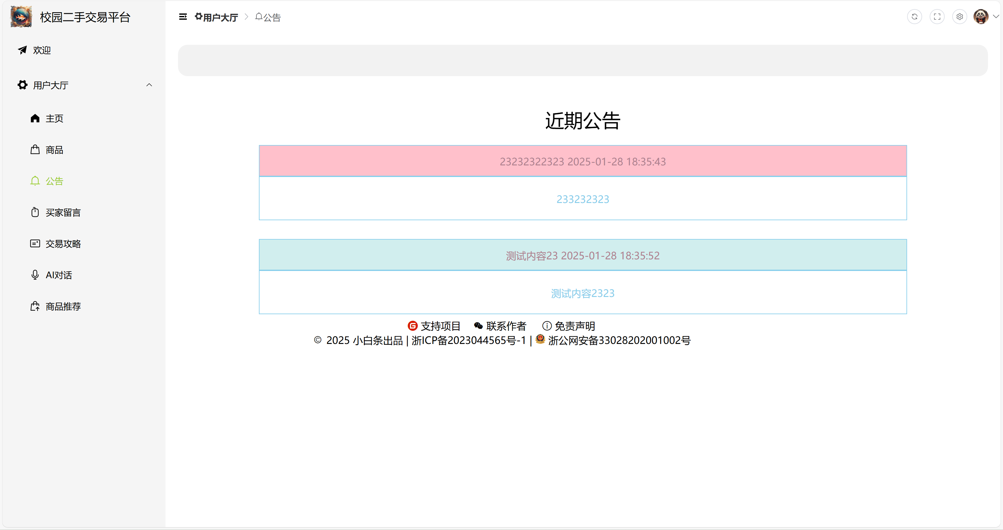 3)公告浏览:查看近期管理员发布的公告,获取最新平台动态。