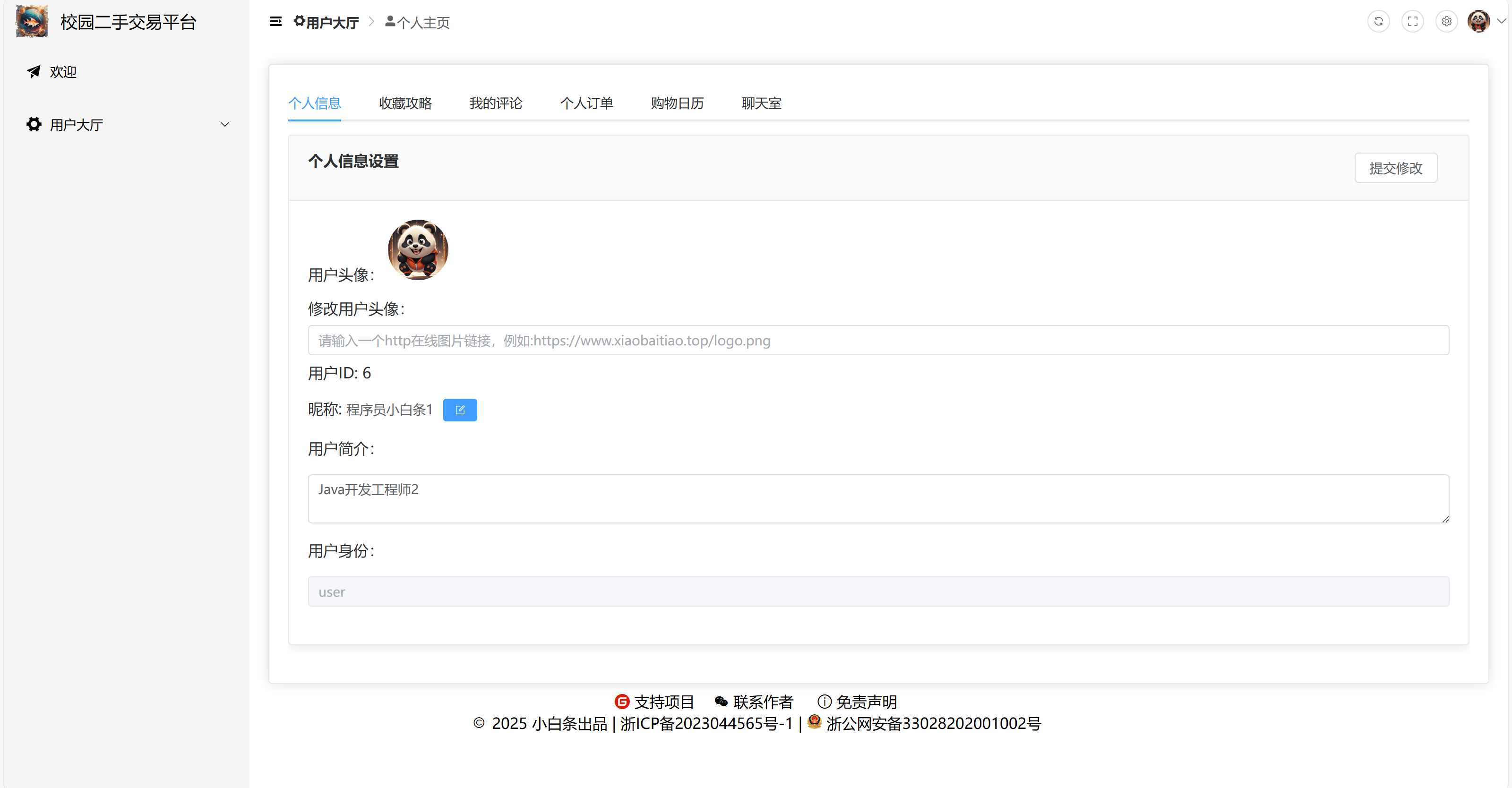 个人主页(包含个人信息,收藏攻略,个人订单,购物日历,聊天室)