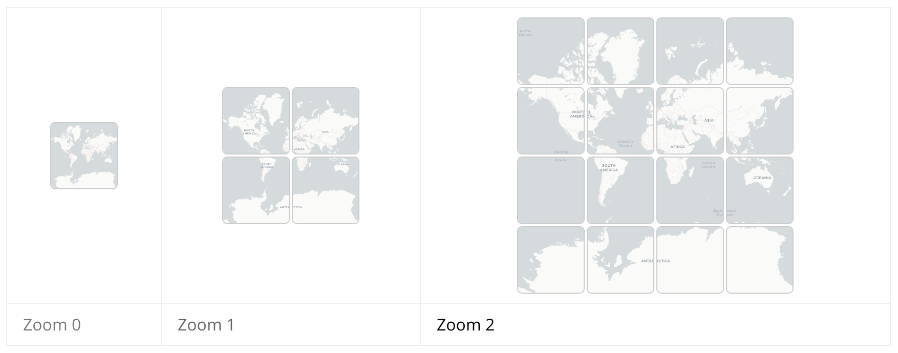 Web Mercator 0级,只有一个Tile, 一般大小 为256 * 256,经纬度投影 0级,有两个Tile, 512 * 256, 如上图,这是一个明显差别。