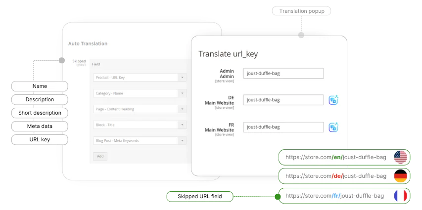 While most of your content has to be translated, there are still some specific elements better left untouched. This Magento Translation Extension takes that into account and allows you to skip specific entities from auto translation.