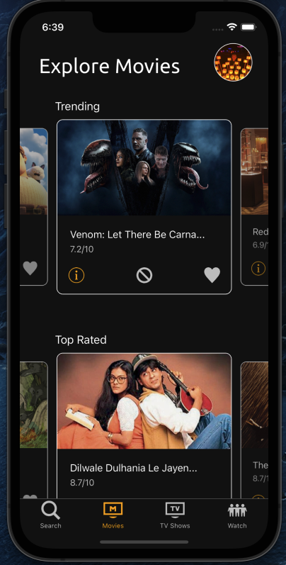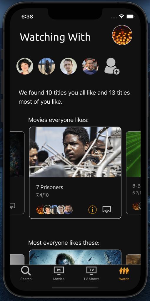 A mobile app that allows you to figure out what movie to watch when with friends.