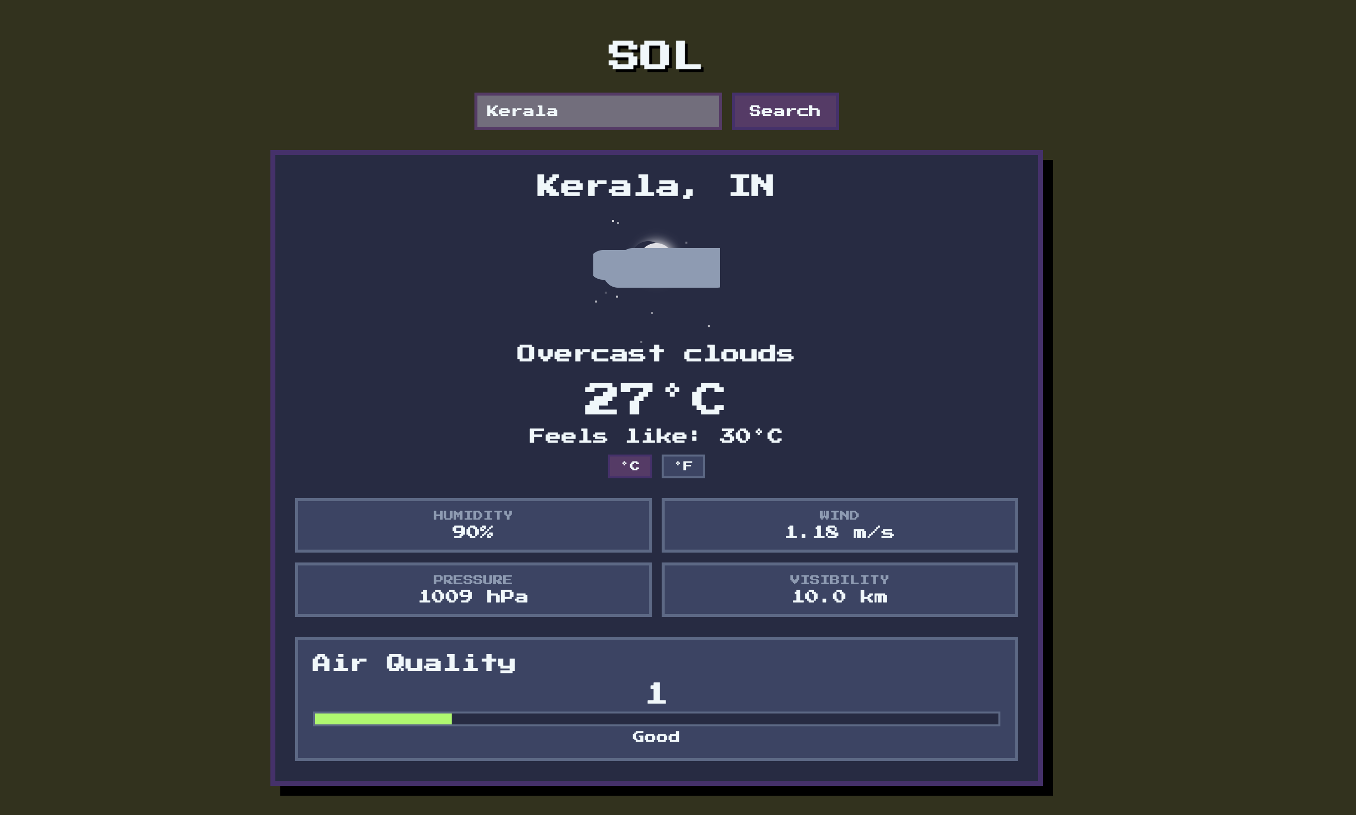 - Retro Pixel Art Interface - Weather conditions visualized with charming pixel animations