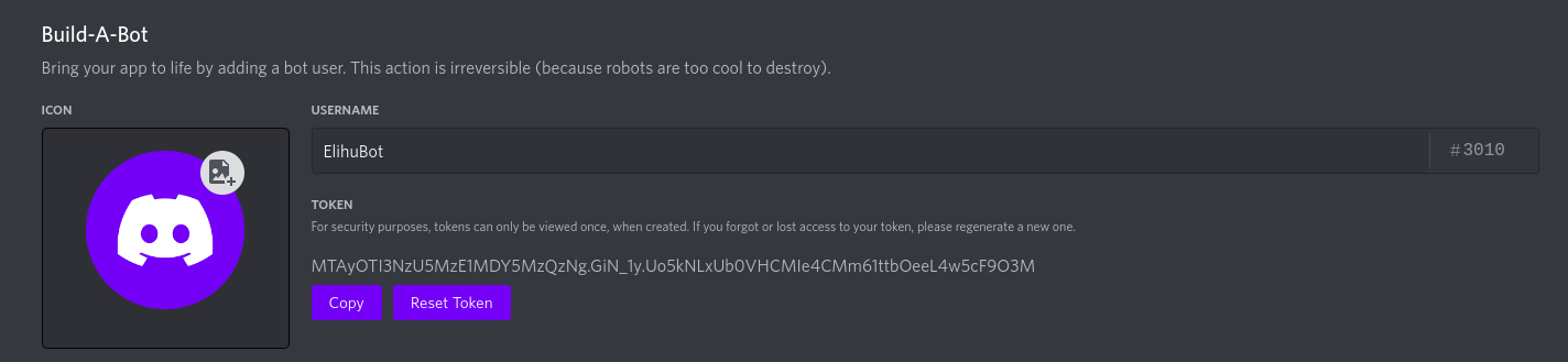 - Copy the bot token and paste it in the