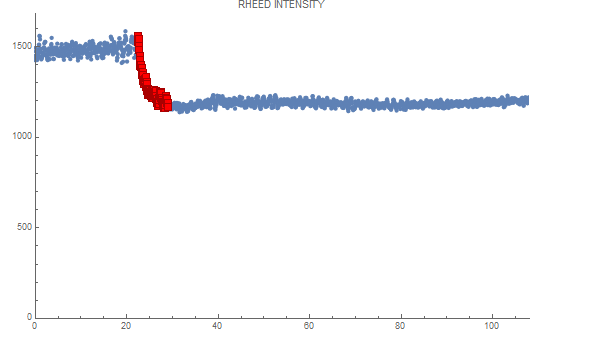 Common issues that appeared in the data are excessive noise and unusual behavior in the RHEED intensity. Some of this could be remedied by dropping many of the signals, but it is nice to fit them if possible. Examples of RHEED signals that caused issues are below.