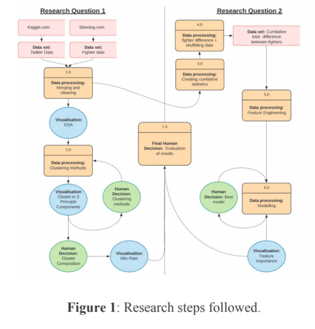Predominantly focused on well established sports, more niche sports like mixed martial arts (MMA) have been largely ignored [3]. MMA presents an interesting problem, as a fighters skill set appears to be an important predictor of the winner of a fight (28 current champions are wrestlers, whilst 6 are kickboxers). All martial arts specialise in one method of winning either knockouts (from standing position) or submissions (from ground position). As both are permitted in MMA, a successful fighter must amalgamate two or more traditional martial arts categories to be successful. As there is currently no accurate way to describe a fighters style or understanding of the success of a style the first research question is: